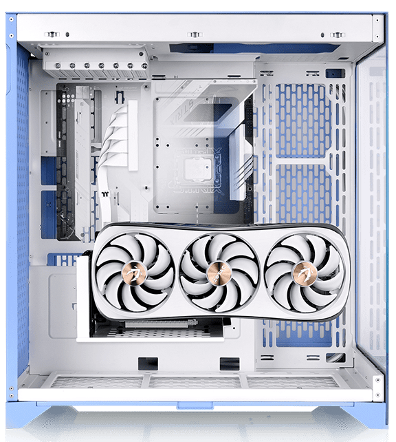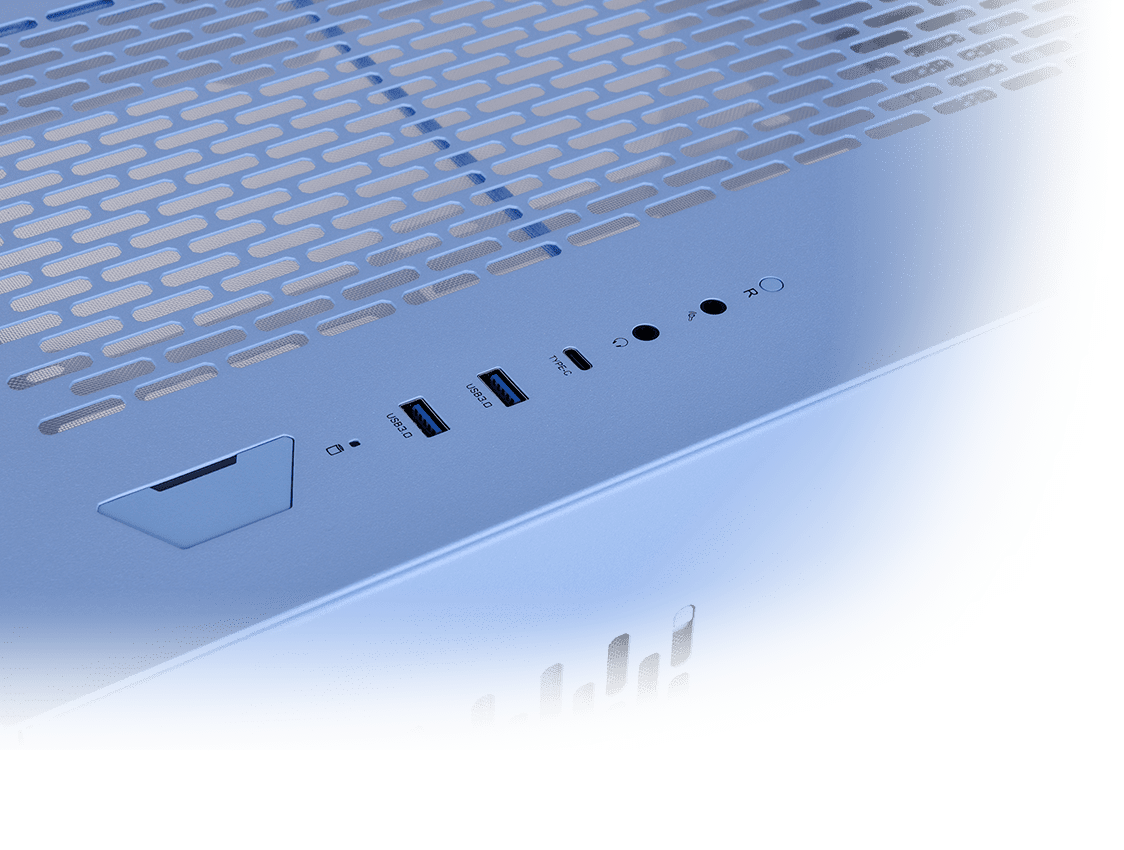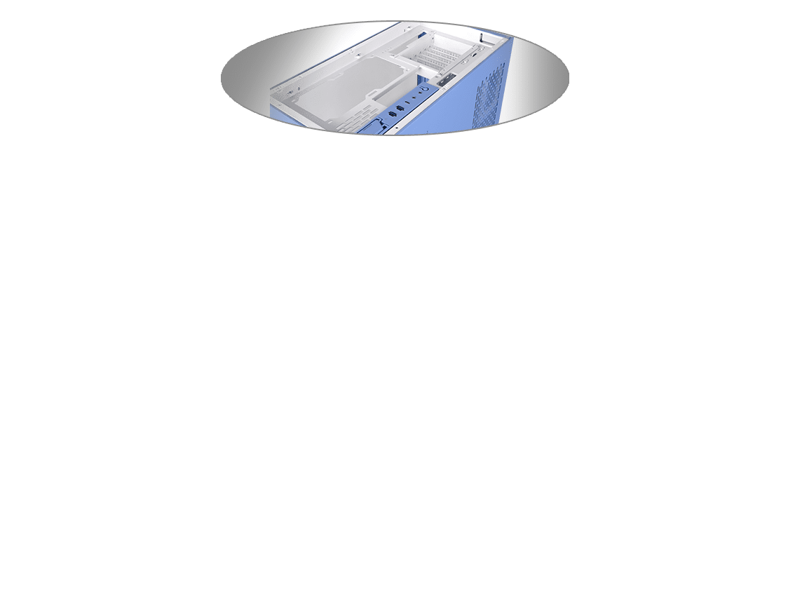 The CTE E660 MX Hydrangea Blue has excellent expandability, allowing you to build the most high-end system you can dream of. It can support up to an E-ATX (12”x10.5”) motherboard, a CPU cooler with a maximum height of 166mm, VGA clearance up to 443.8mm in length without a radiator, a power supply with a length of up to 220mm, and up to two 2.5” SSD or three 3.5” HDD. Optimized for excellent cooling capabilities, the CTE E660 MX Hydrangea Blue can house up to fourteen 120mm fans or twelve 140mm fans, and 360mm/420mm AIO coolers at the front, rear and M/B side, allowing users to build their desired high-end system with many options.