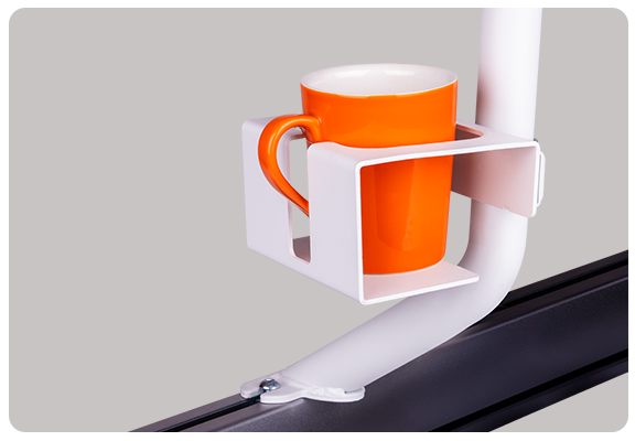 The Keyboard & Mouse Tray includes a built-in cup holder designed to accommodate a range of cup sizes, including mugs, ensuring that your beverage is always within easy reach.
