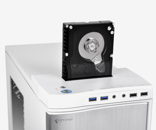 Top-mounted 2.5” or 3.5”HDD Docking Station enables blazing fast file transfer and effortless hot-swap drive replacement design for easy setup or removal of HDD.