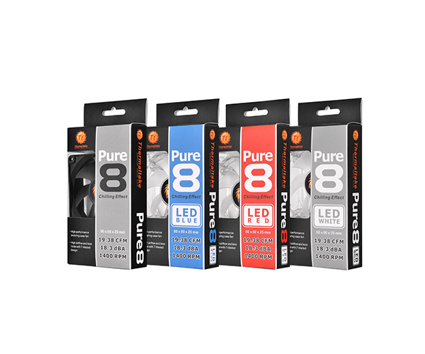 The Thermaltake Pure 8 LED Series comes with reliable, stable performance and gorgeous vibrant style. With sleek fan blade design along with long life bearing, it guarantees ultra low noise. The Pure 8 LED fan offers the perfect balance of silence, style and efficiency. Available in 3 colors of LED version to add up styles into the PC case.