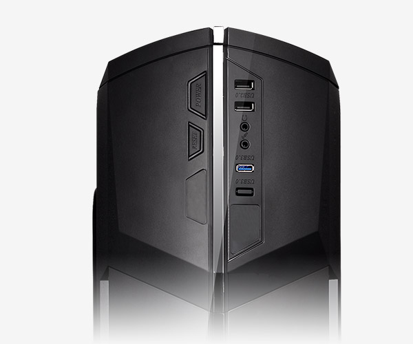 The top-front panel features one USB 3.0 data transfer port along with two standard USB 2.0 ports as well as HD microphone and headset jacks to grant direct access when needed.